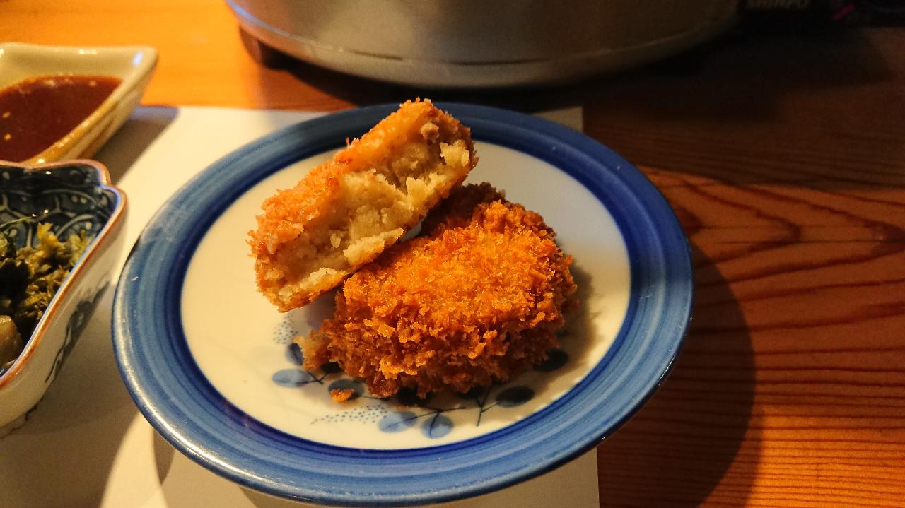をお願いし、隣の精肉店で作っているコロッケもお願いしてみました。 (精肉店でコロッケを買うと1つ100円ですが、食事場所でお願いすると1つ150円でした)