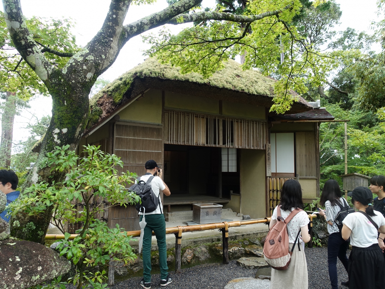 鹿苑寺というと、ついつい煌びやかな金閣が頭に浮かびますが、境内には他にも見どころが多いです。茶室の「夕佳亭」は、高台にあります。小ぢんまりとした建物で、派手な金閣とは対照的です。観光客にも人気のスポットで、撮影をする人が絶えませんでした。