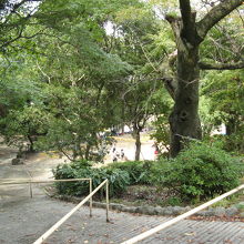 遊具がある広場やハイキングコースがたくさん整備されています。お手軽に散策を楽しめる“望海亭コース”を歩いてみました。コースの入口は公園総合案内所・売店のすぐ西側にあります。階段が続く道がありしんどいですが、20分ほどかけて登り切ると休憩所が有り展望が開けてすがすがしい気持ちになりました。