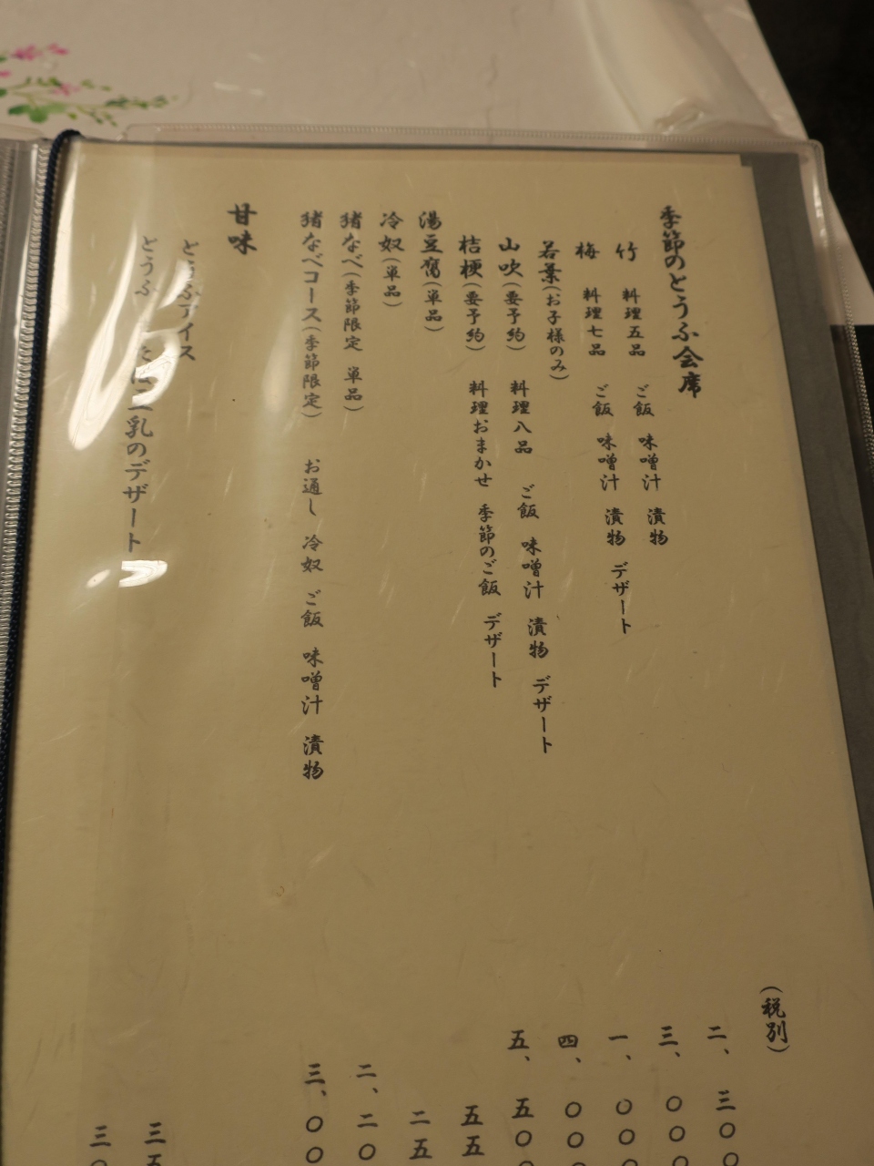 大山は豆腐で有名である。それ以外にも猪鍋もある。豆腐のコース料理をいただく。全7品プラスご飯、デザートである。胡麻豆腐、湯葉、湯葉の刺身、煮物など結構お腹がいっぱいになった。味がしっかりしており、また訪れたい場所である。