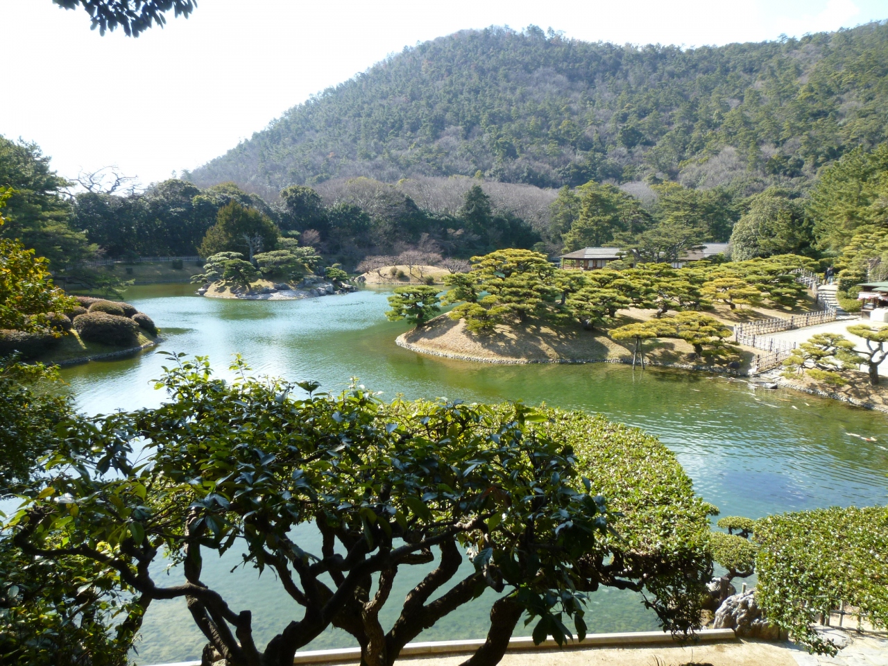 高松市中心地にあり、交通の便は非常に良いです。日の出から日没までの営業時間で、入場料は410円です。ボランティアガイドは是非活用していただきたい。池が6、築山が13の他、松林も綺麗で、説明を聞きながら散策もいいものです。終了後にもう一回園内を周ると一段と面白いです。