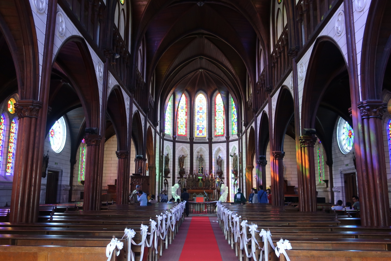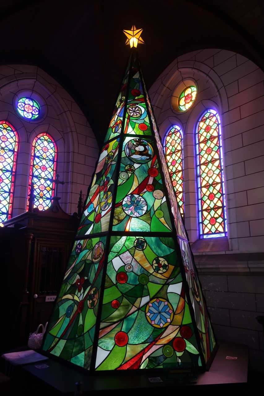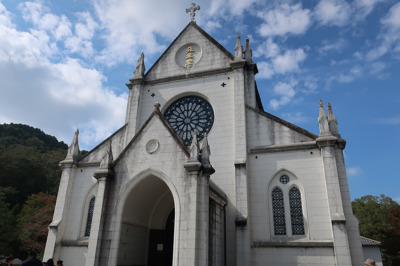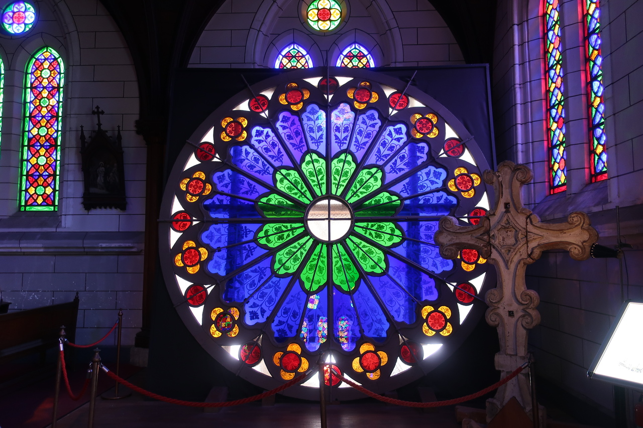 大きなバラ窓は、礼拝堂に入って直ぐ