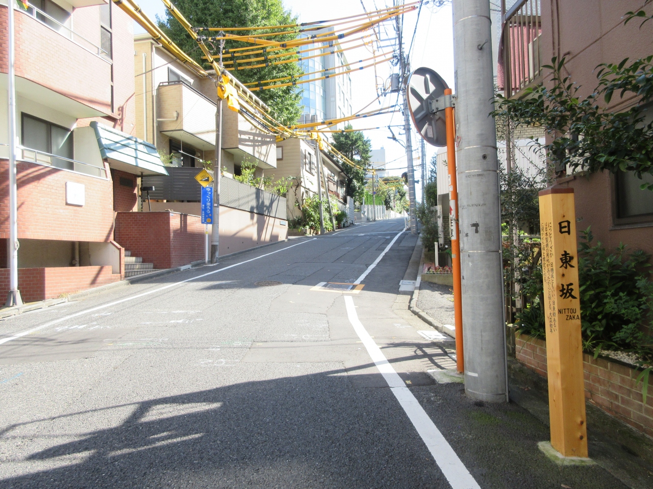 国立自然教育園の裏と並行した坂です。マンションや住宅地にある坂で道幅は広く、車の通りが少ない静かな坂です。坂下にジンバブエ大使館や日東坂下遊び場があります。プラチナ通りと首都高2号線の下を走る418号線の間の坂です。名前の由来が珍しいので歩くのもいいかもしれませんが、この後庭園美術館へ行こうとしたら白金トンネル脇の寂しい道をぐるっと回らなければなりませんでした。特徴のある坂ではないのでわざわざ行くほどではありません。