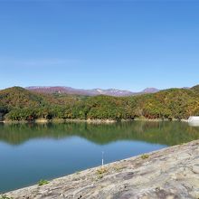 ダムの突き当りまで歩くと、焼石岳も見え、紅葉のパノラマが広がっていました。