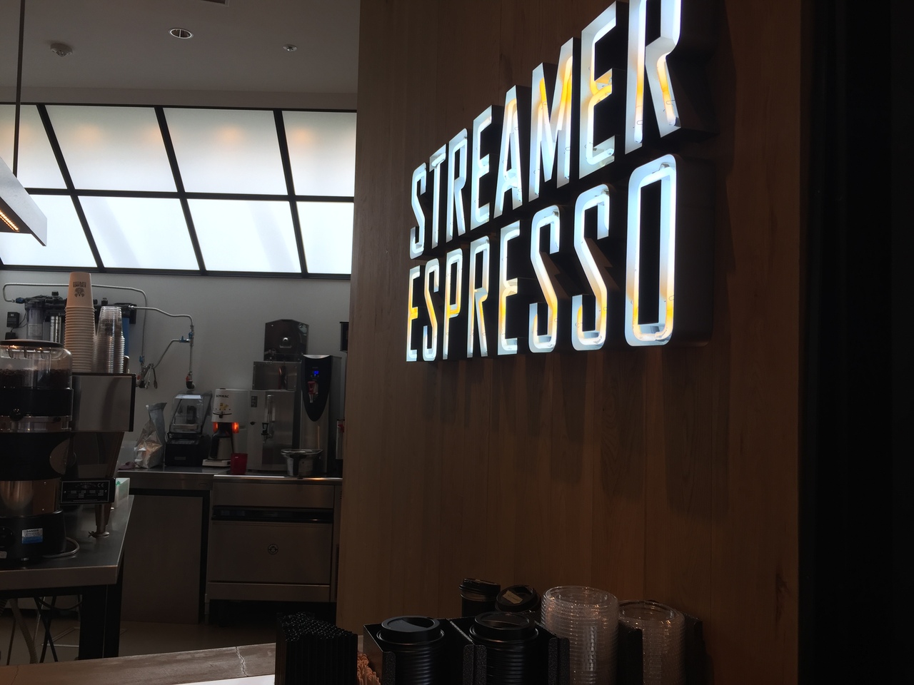 ファミマと同じ入り口で敷地内で2つに分かれます。オーダ後豆をひくとのこと。ラテは570円と高めでカップは大きいです。ラテアートが美しく、コーヒー薄くミルクたっぷり。コーヒーがそれほど好きでない私にはちょうどいいかも。