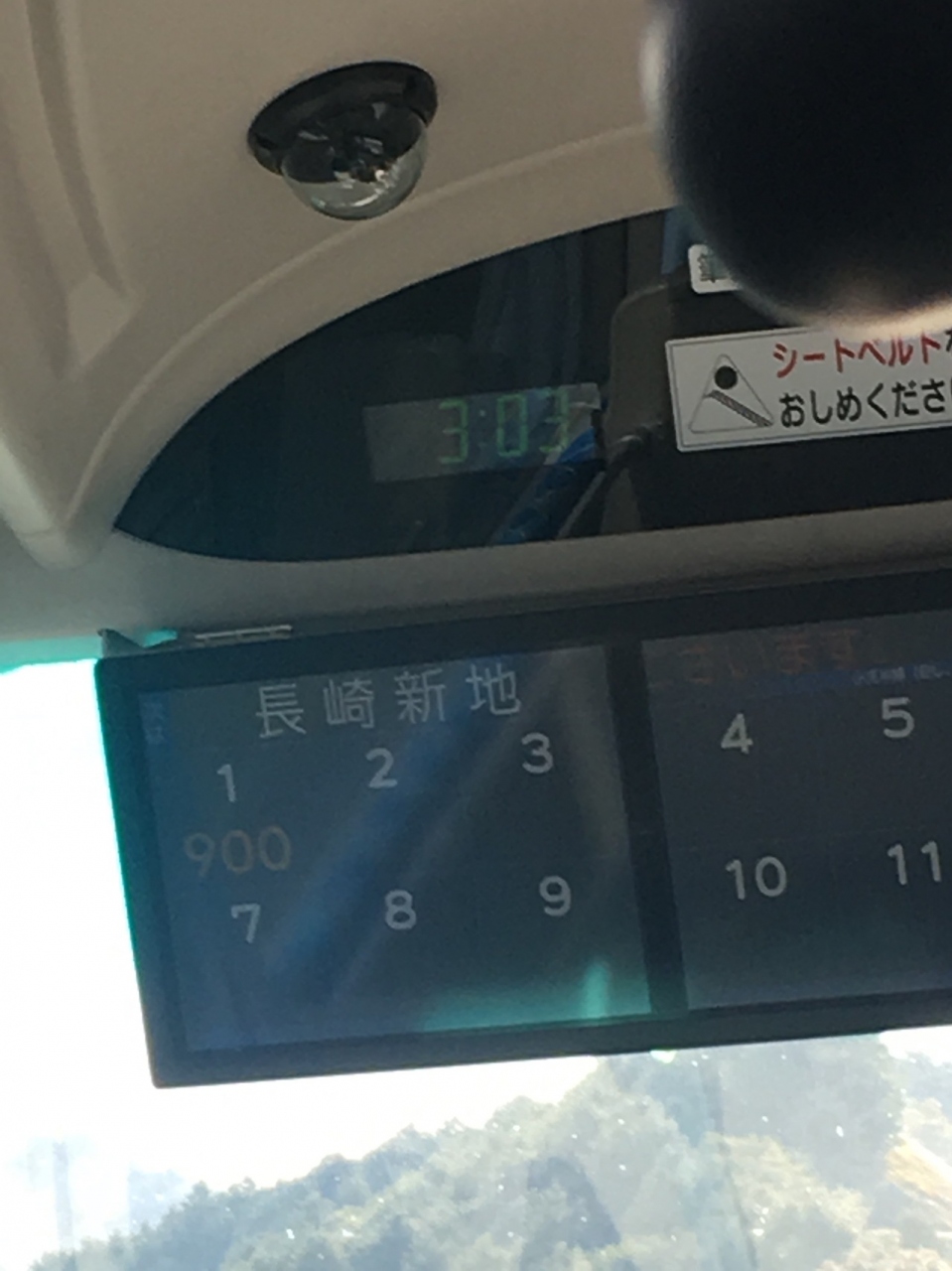 長崎空港に到着したら、市内まではバスで向かうことになる。かかる時間は大体40分弱。料金は900円。往復で購入すると、1600円と片道100円お得。もう少し近ければ良いのにと思うが仕方がない。バスは大体いつも混んでいる。