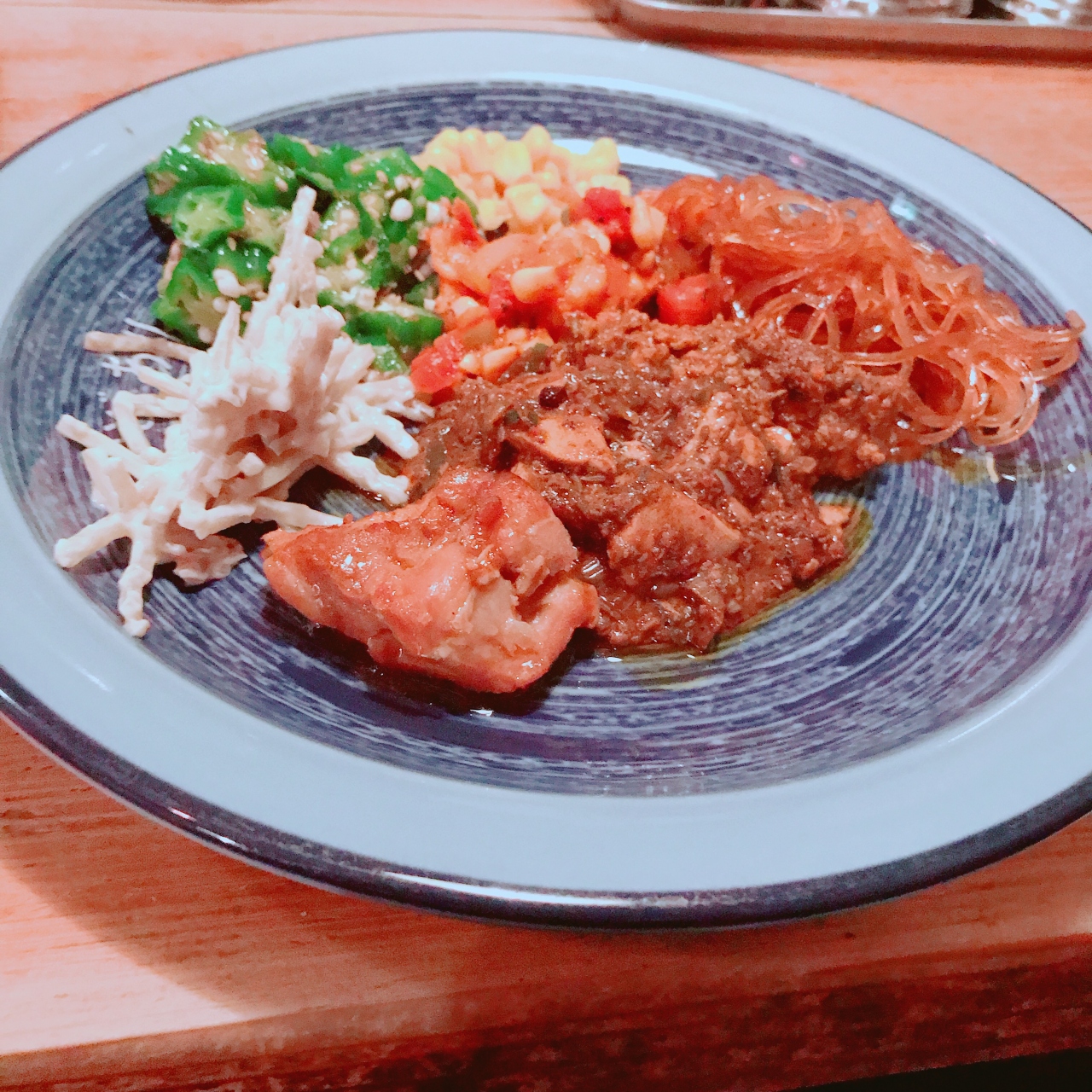 おいしいカレーだとおしえてもらい行ってきました。カレーは4種ほど。あとは野菜や唐揚げなどが並ぶブッフェスタイルでした。野菜が多いのがうれしいです。うどんや春雨もあって超好みでした。あとキーマカレーがとても美味しかったです