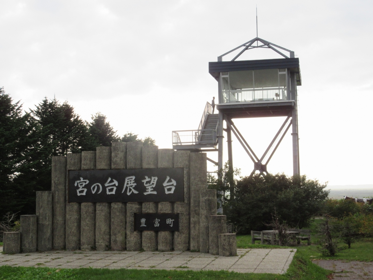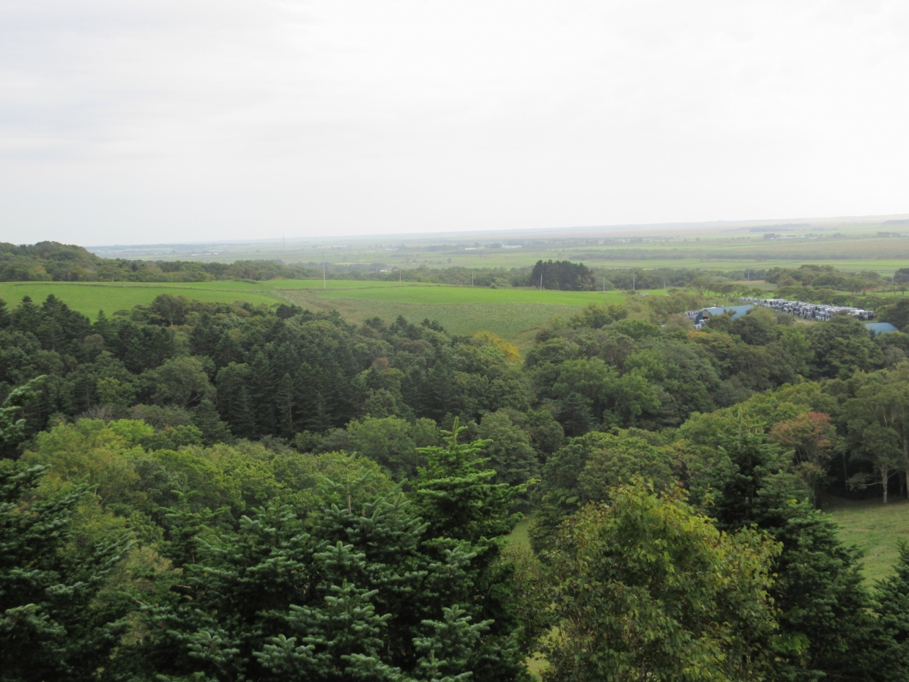 徳満駅近く県道から折れた展望台へのアプローチ道路はガタガタだし展望施設も古びてますが、ここからの眺めは第一級です。駐車場から展望室への階段を上っていくと、サロベツ原野の遠望が広がってきます。広大、雄大、北海道、実感します。訪れたのが夕方だったので、逆光になって海があまり見えなかったです。