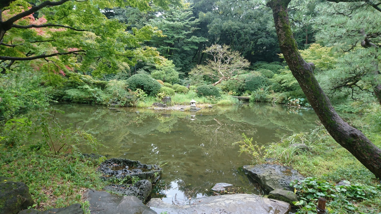 テレビ番組で栄養のある土を採取するために「かいぼり」を行っていた甘泉園公園に行きました。庭園の中央に湧水があり、その清水がお茶に合うところから甘泉園となったそうです。現在は区立公園になっており、ひょうたん型の池を中心に、浮島や樹木が生い茂る回遊式の庭園で、とても気持ちのいい公園でした。