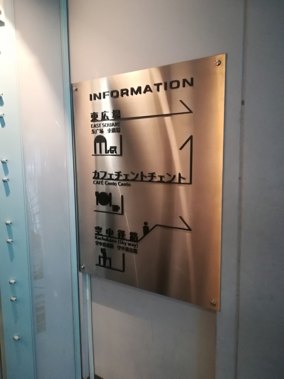 エレベータ降りて右側に歩いて一度屋上空中経路付近に出ます。