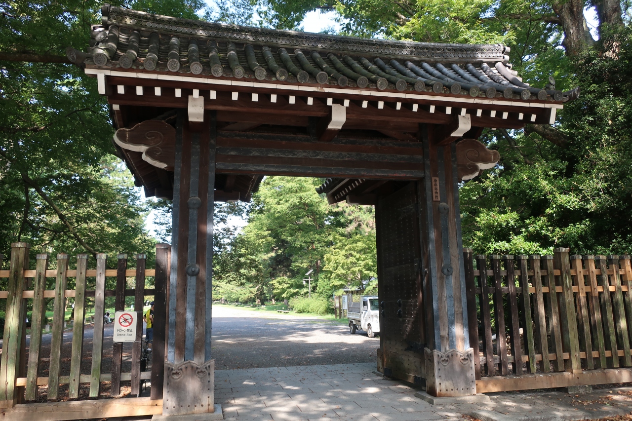 御門自体は他の門同様ですが、京都御苑に北東部から入る門として人の行き来が多い御門です。近くは母と子の森があり、とても自然豊かな所にあります。