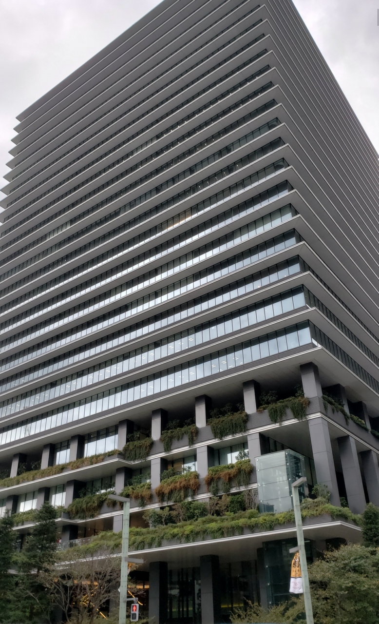 近代的なビルですが上の階(3階?)くらいまで緑がたくさんでした(植え込みだけでなく立ち木もあることに驚きw)「京橋の丘」と名付けられたオアシスになっていました。