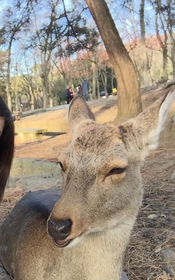 奈良公園は着いたらすぐ鹿がいました。そこら中に鹿。