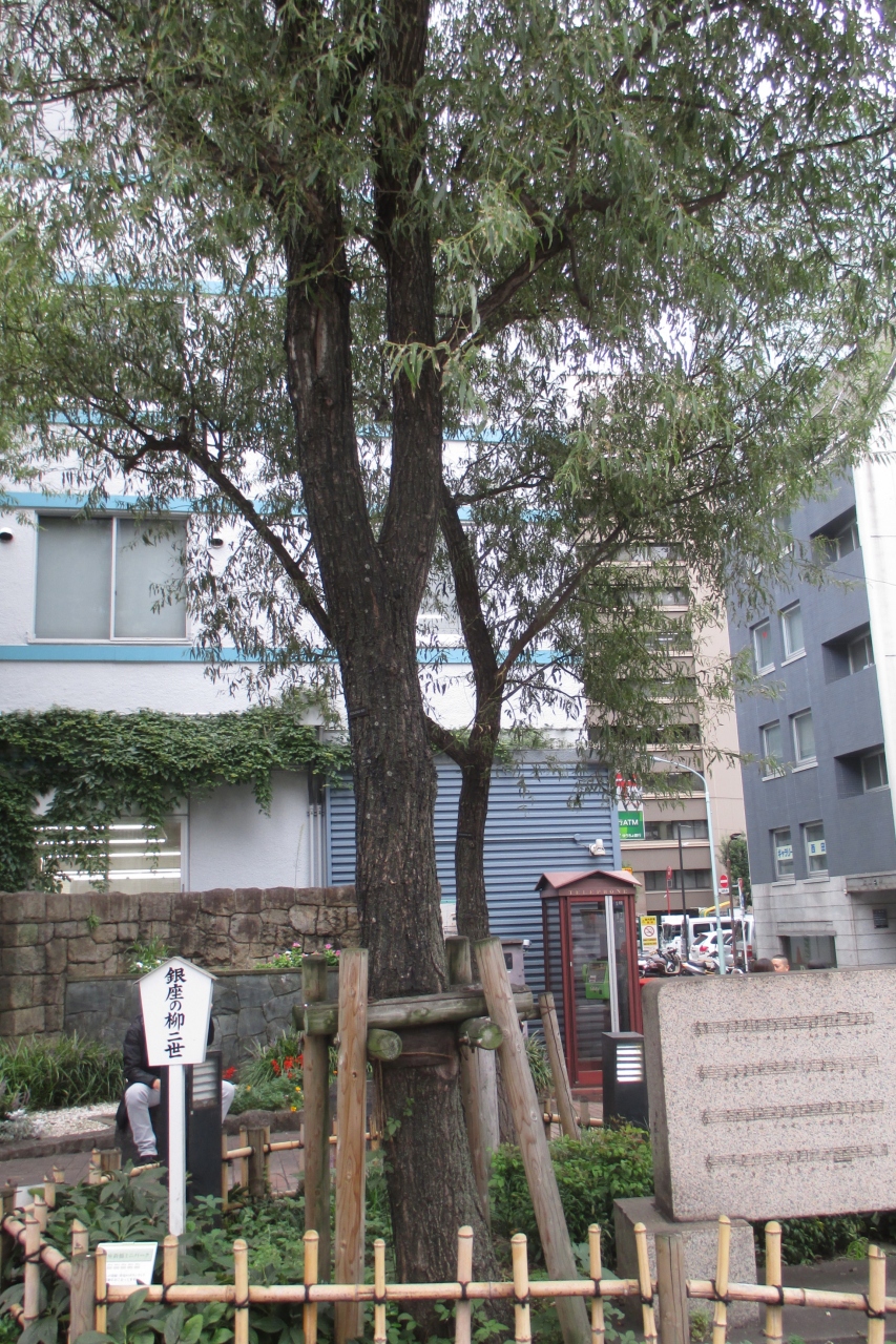 この曲が発表されたのは昭和の初めで、銀座の柳の碑は昭和29年に建立されたとなっていました。どちらも、その頃には、柳があったのですよね。この碑の近くには2世だという柳がありました。歌詞の様に、パリのマロニエに負けない柳通りを復活して貰いたいですね。