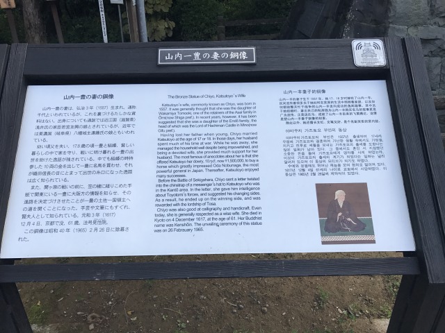 高知公園を通って、高知城などいろいろな史跡を経て疲れ切った時、最終的に山内一豊の妻像に遭遇します。高知公園を一周するだけで疲れるので、妻像にたどり着くころにはクタクタで写真を撮って早く次の観光地へ行きたいとなっていました。像は大きく立派です。それ以外は特に何もありません。