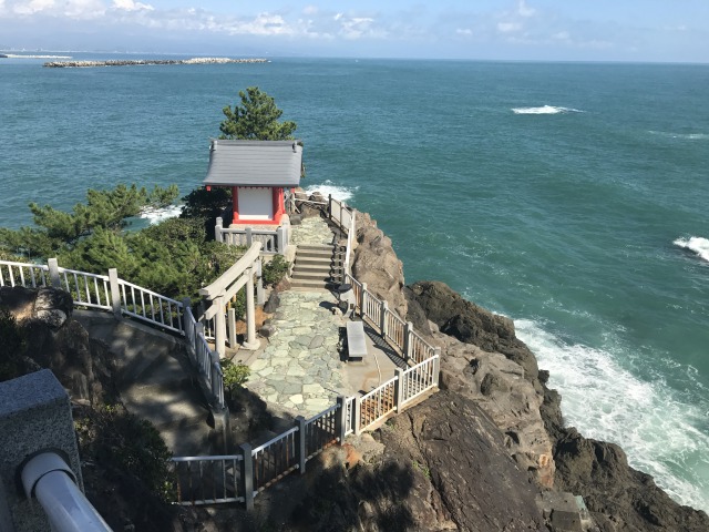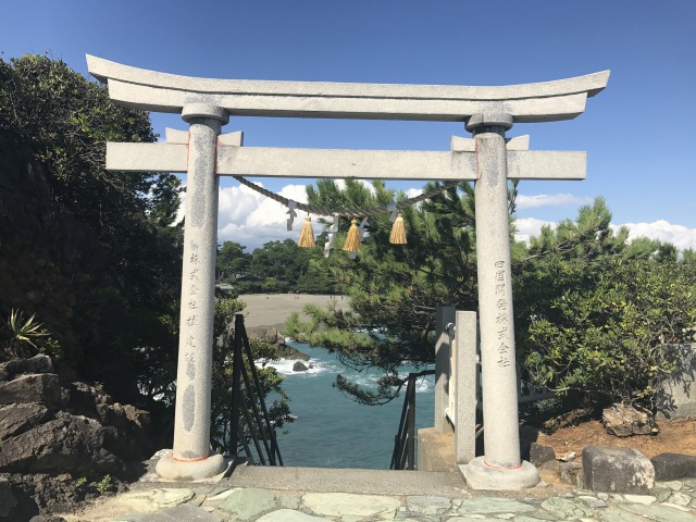 小高い岩山の上にある海津見神社はお社自体はとても新しく、一つの観光名所のようでしたが、小高い丘の上から見た桂浜が本当に綺麗で、ずっと眺めていたくなりました。神社は至って普通の神社。潮風が強いので、すぐに傷みそうで心配になります。