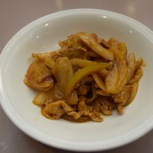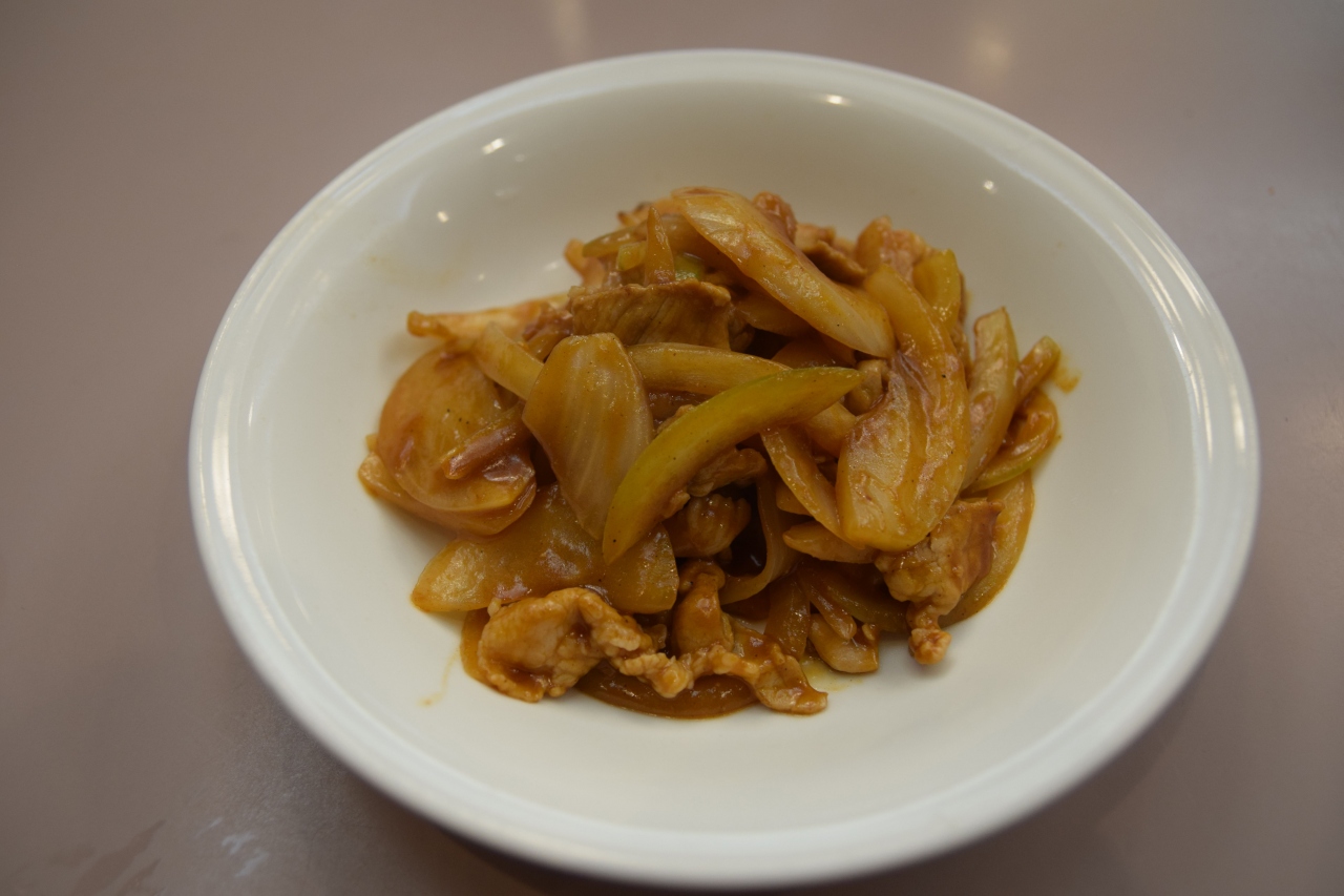 豚肉とタマネギを特製のソースで炒めた