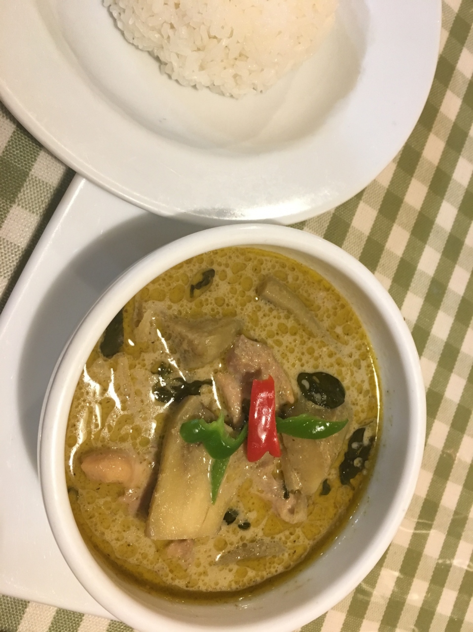 鶏肉と茄子のグリーンカレースープ付き(953円)を注文
