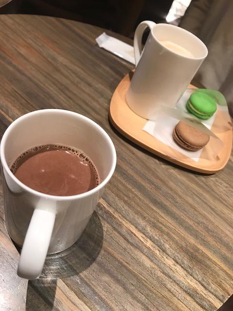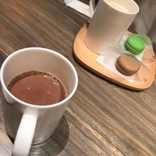 チョコレートドリンクは安定の美味しさ、マカロンやケーキのセットもありなんだか大満足。