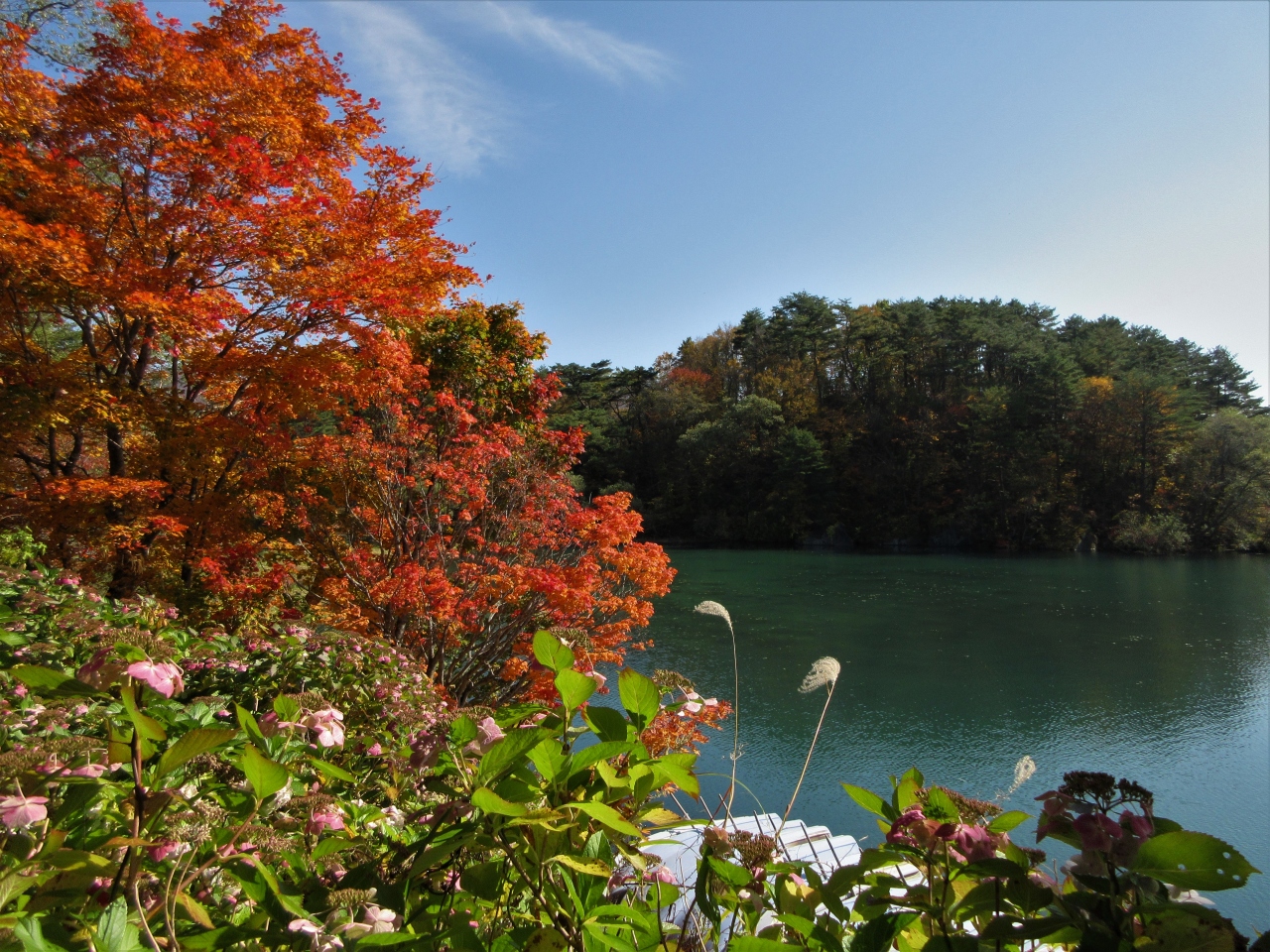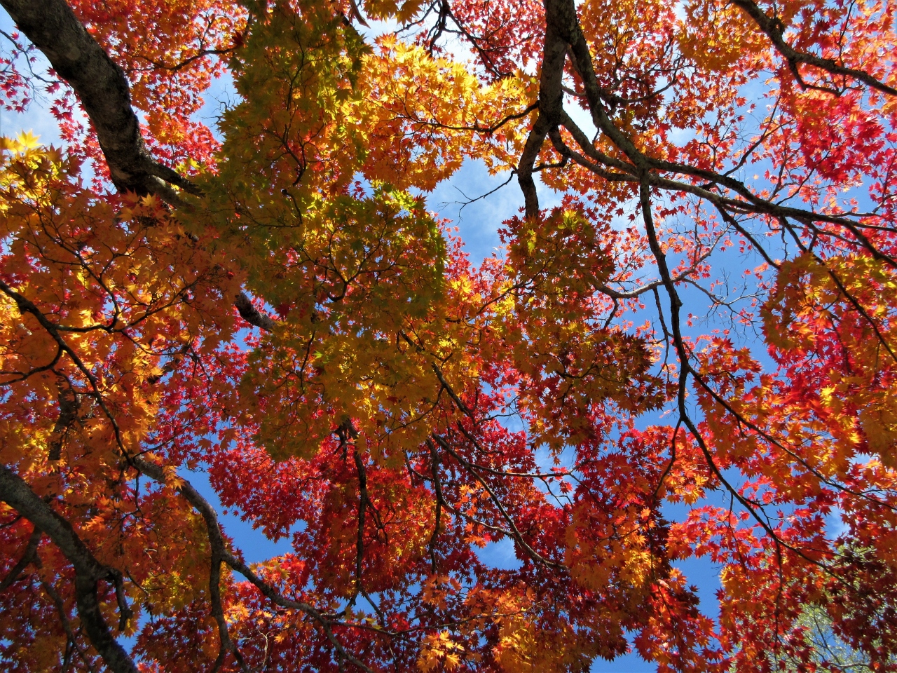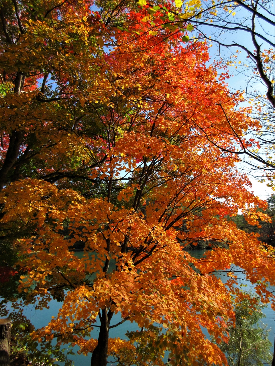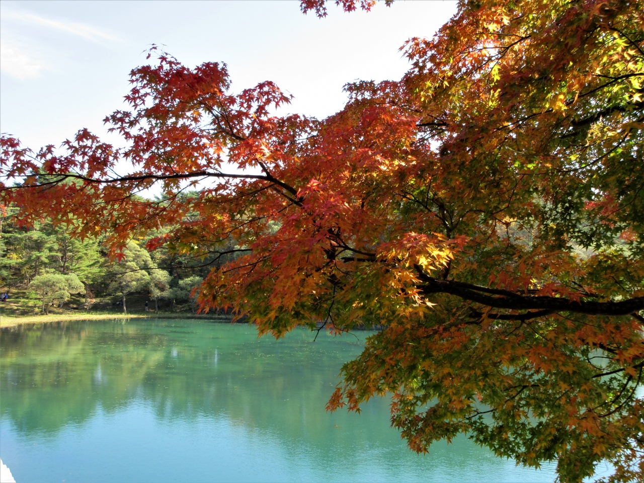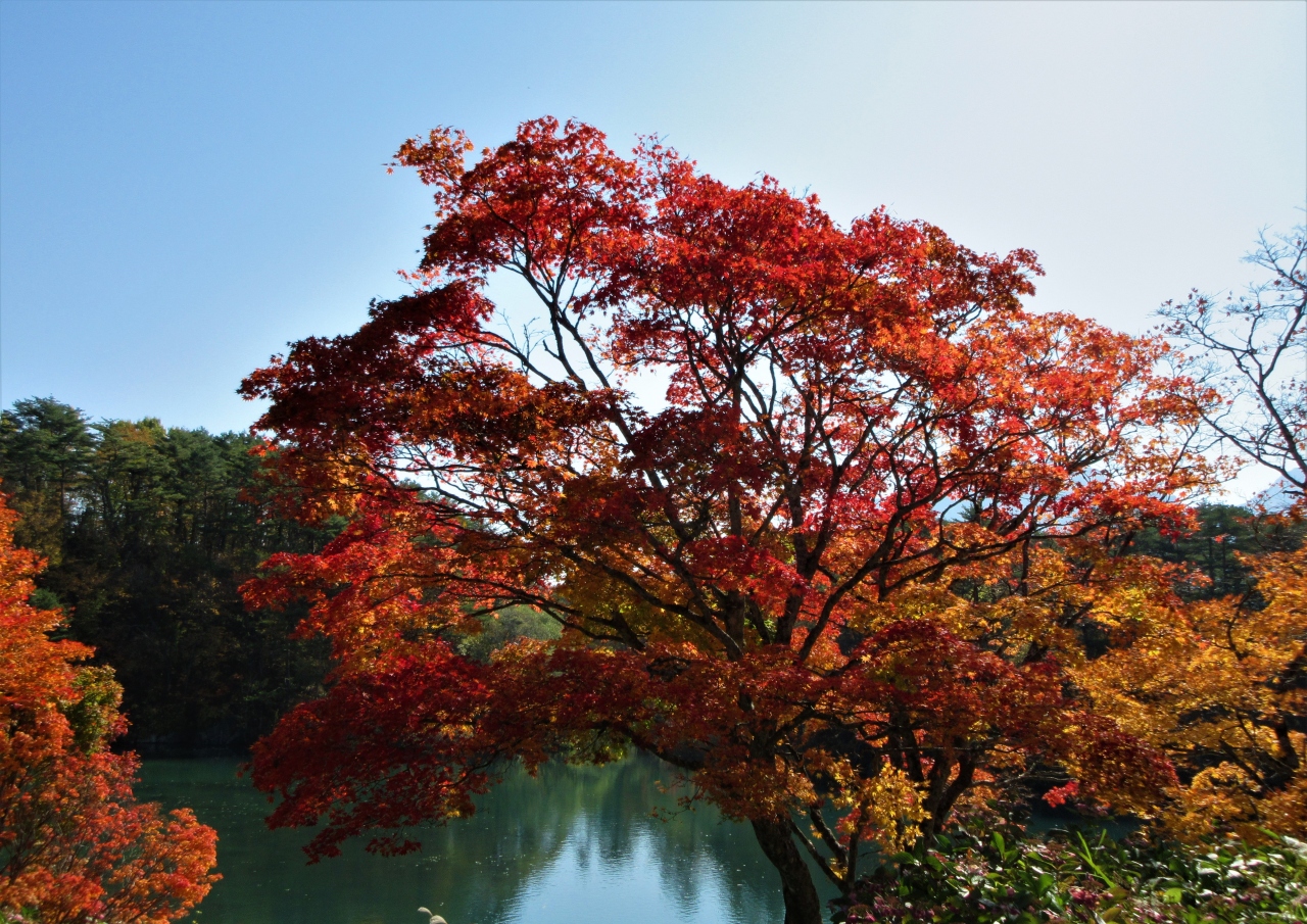 周辺には楓の木があり赤や黄色に紅葉をしていてきれいでした。