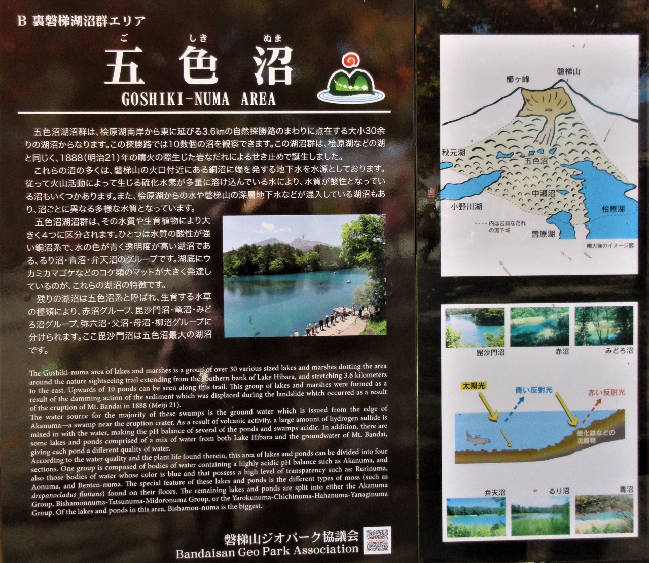 毘沙門沼の展望台からは毘沙門沼と正面に会津磐梯山と櫛が峰が見えます。