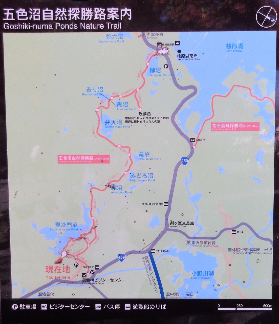 木々で隠れて山全体を見られませんでしたが会津磐梯山の方が標高は高いのけど同じぐらいの高さに見えました。