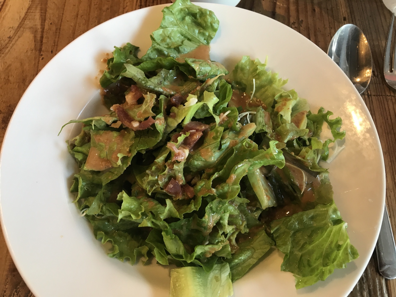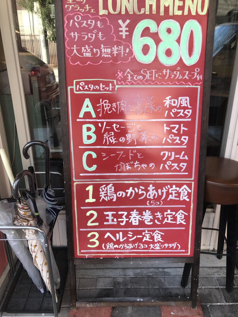 なんばパークスまえの南海ガード下にあるイタリアン中心のお店。ランチパスタが¥680でサラダ、パスタの大盛りが無料に惹かれ入店。クリームパスタ大盛り、サラダ大盛りを注文。まずサラダがきたが、味気ない葉っぱだけのサラダで異常なくらいドレッシングがかかっていて、美味しくない。パスタも麺が茹ですぎでかき回していないので