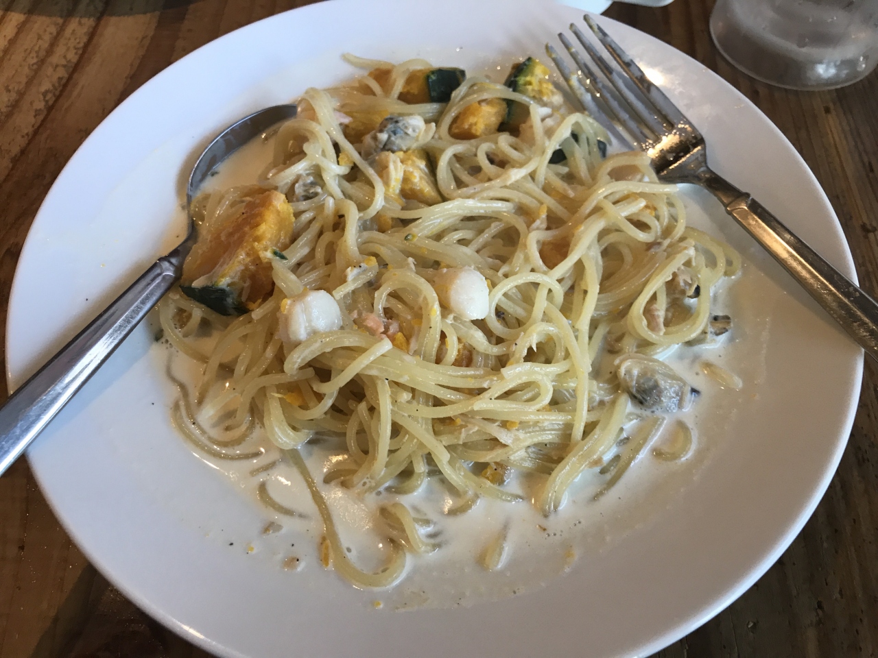 パスタが固まりでくっついている。全然美味しくない。ここは唐揚げが有名っぽいですが、もう2度といかないと思います。