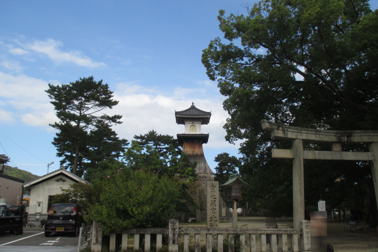 瀬戸内海を航行する船の指標となったそうです。本当でしょうか? 昔の丸亀街道は、高低差が少なく、歩きやすい街道として人気があったそうです。この高灯籠は高さが27mあります。また、この高灯籠のあるところの標高は約65mです。丸亀からは直線で約12kmですから、高さ100mくらいの明かりが見えたかどうかと云うことになります。光量があればと思いましたが、当時は月がなければ夜はまさに闇になったでしょうから、それなりの明るさでも見えたでしょうね。海上の安全を見守ったことでしょう。