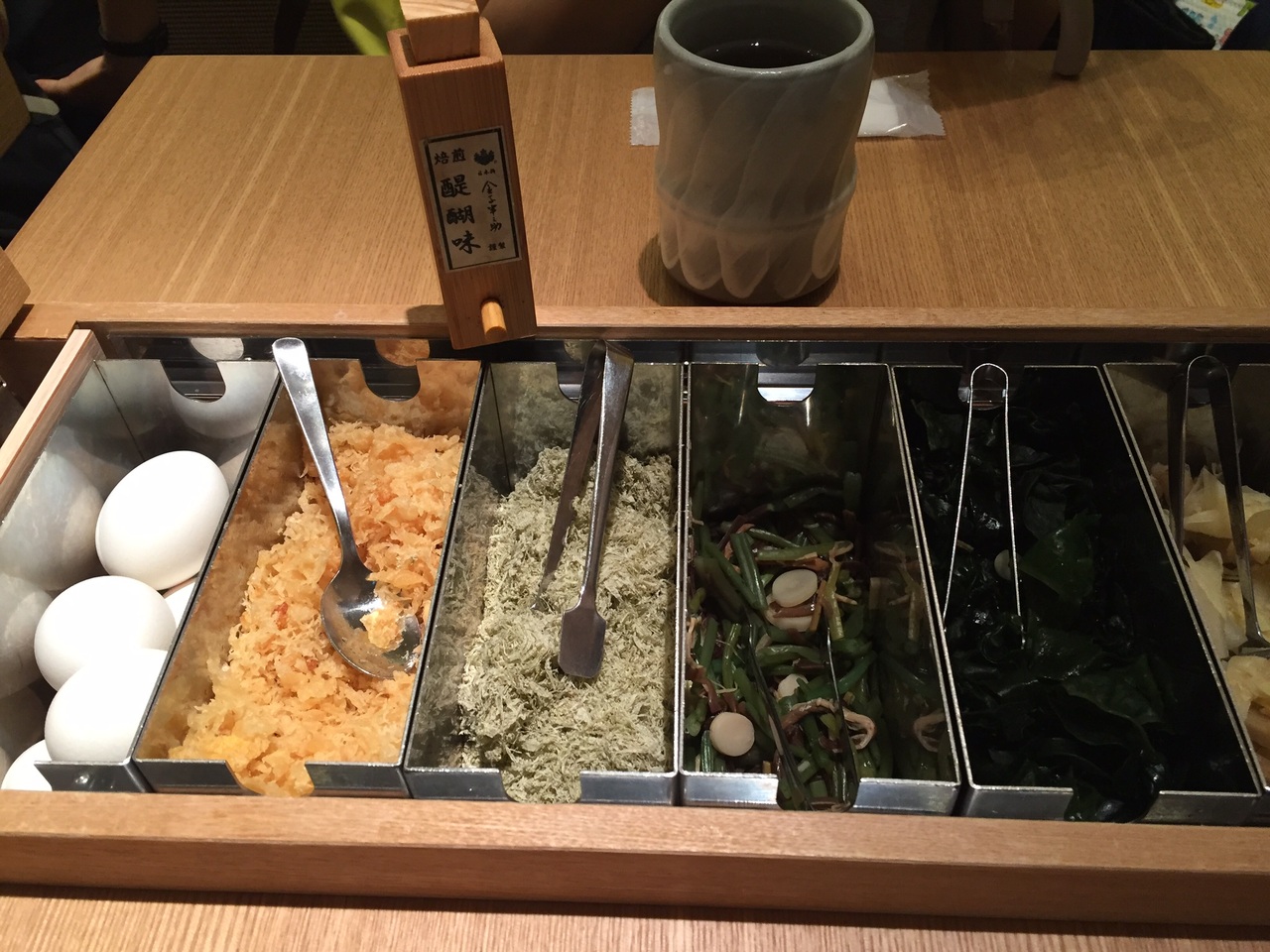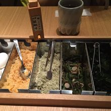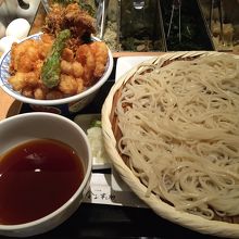あの金子半の助がやっている稲庭うどんのお店です。稲庭うどんのトッピングは卓上に置かれていて食べ放題になっています。その中には温泉たまごもありました。それにバラ天がついているセットを食べたのですが男性でも満腹になると思います。おいしかったのですが出来立ての天丼を食べたいのであればやはり金子半の助に行くべきです。