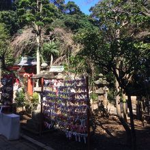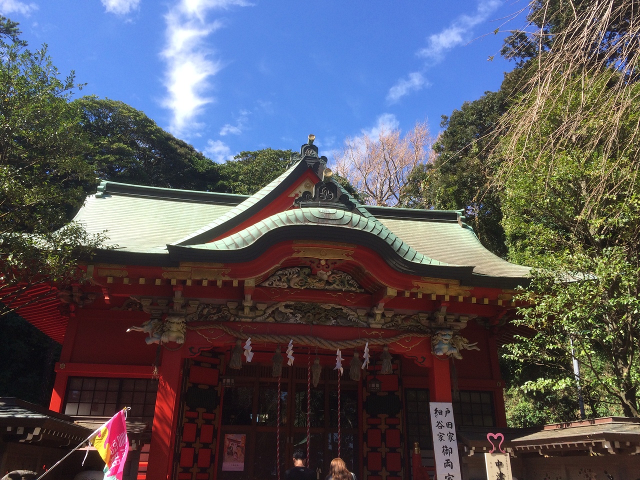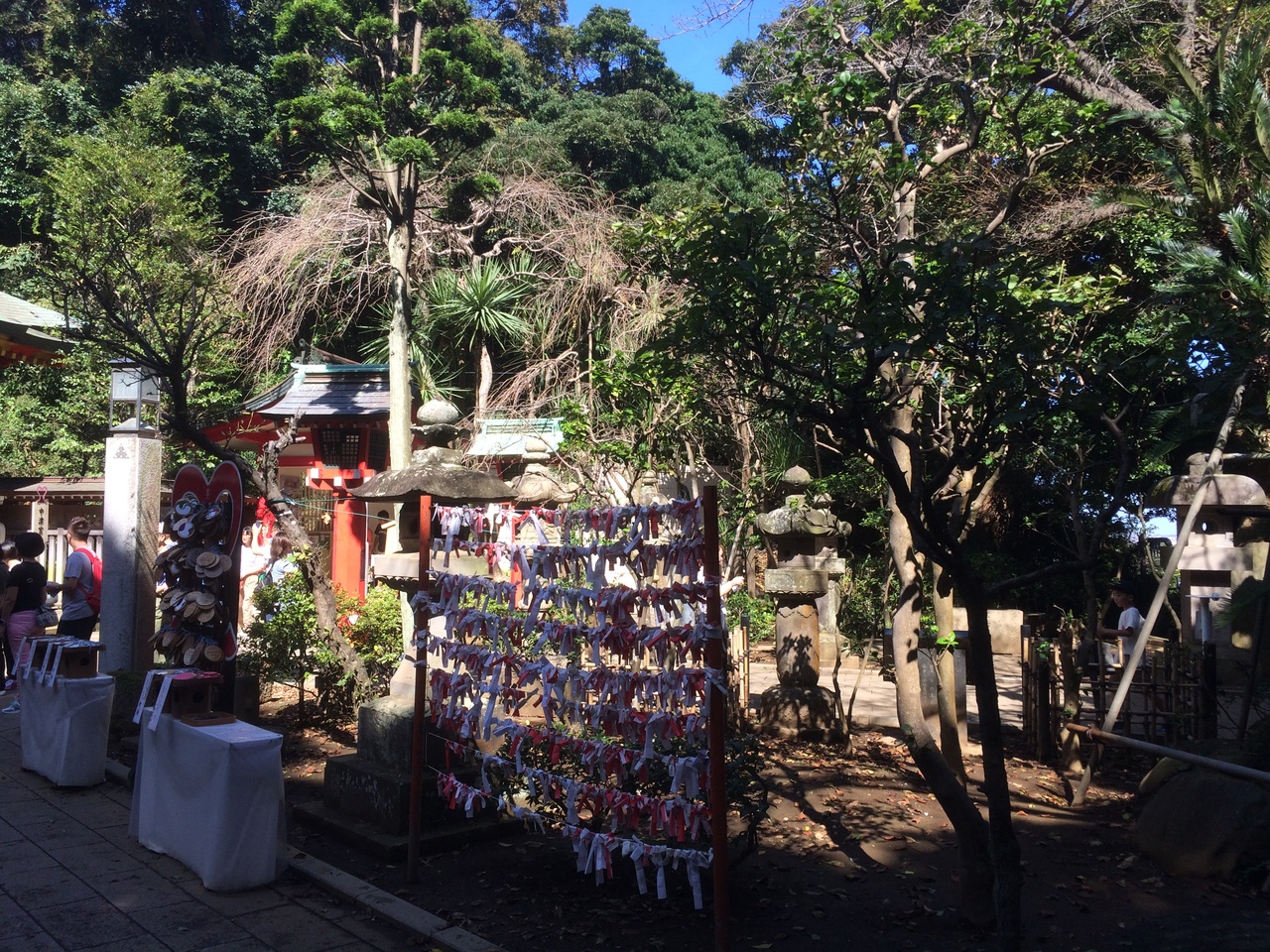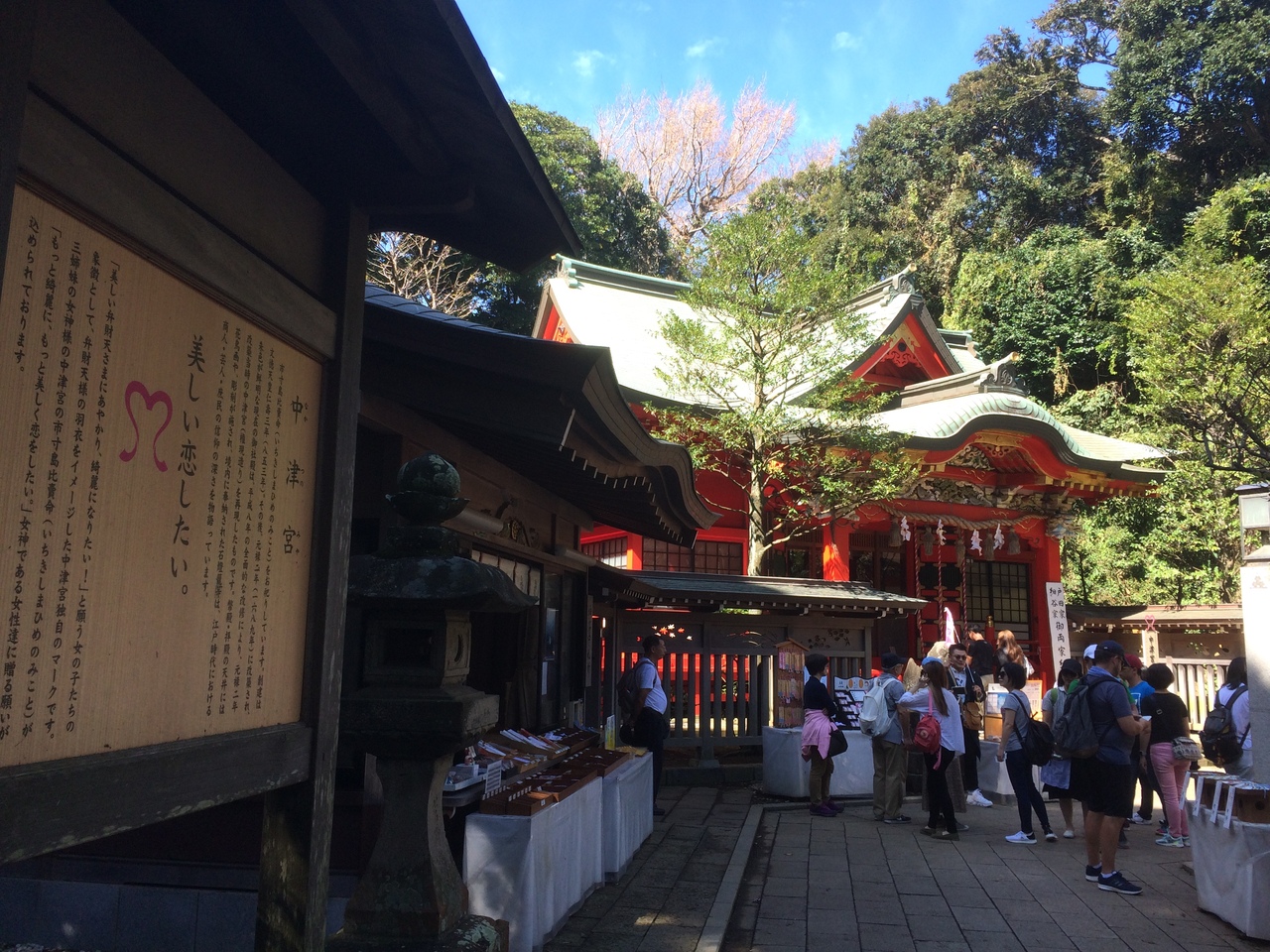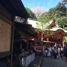 階段を登りきると、いきなり赤い社殿が見えまいた。赤い色が素敵で階段登りで少し疲れたので、赤い色を見て少し疲れがふっとびました。縁結びの宮のような若者が多く、おみくじをしている人を多くいました。おみくじがたくさん結んであり、白と赤のおみくじの色が見事でした。その後ろには古めかしい灯篭がありました。