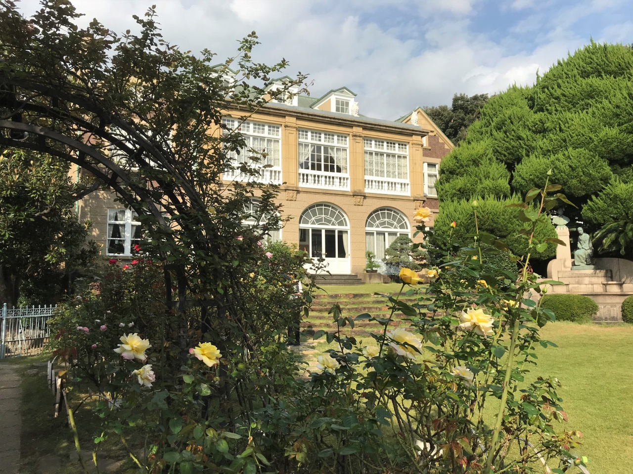 せっかく入ったのにもったいなかったのですが、今回は会館内を拝見せずにお庭の拝見だけ。いそいそと次なる薔薇園に向かいました。