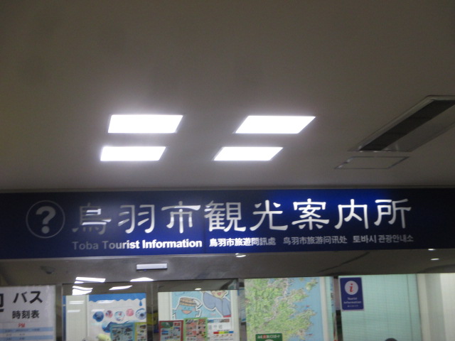 近鉄の鳥羽駅の改札を出てすぐにある観光案内所で、かなり大きく、資料も充実していてよかったです。前に私たちが泊まる扇芳閣をはじめとして、結構たくさんのホテルの送迎バスの時間を張ってくれてて、これは大変有難かったです。