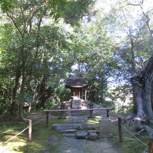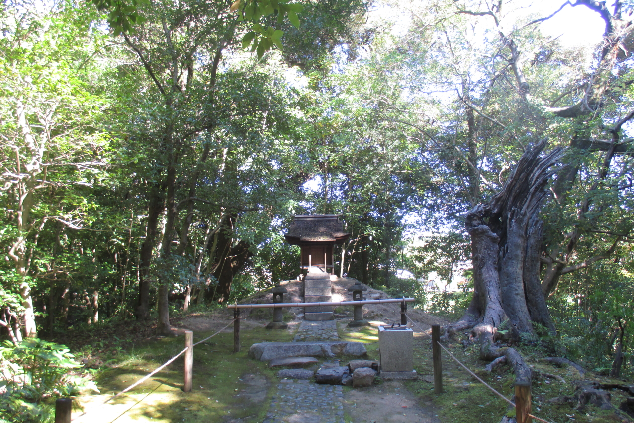 二色が岡の林の端の方のところにありました。思いの外、小さなお堂です。以前の写真を見るとお堂の手前には石造りの鳥居があり、隣には大きなクスノキが生い茂っていますが、訪れてみると、鳥居はなくなり、クスノキは見る影もない姿になっていました。