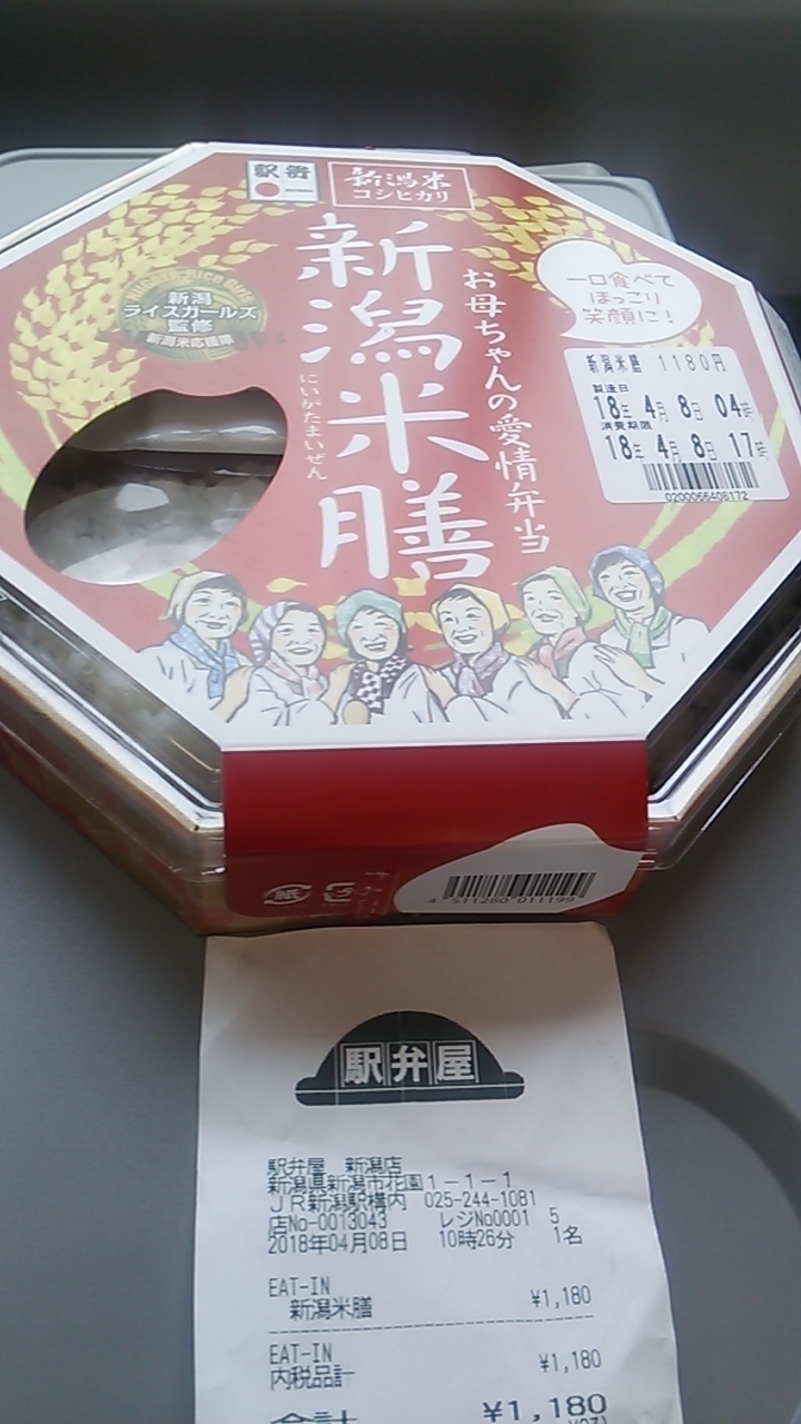 新潟駅新幹線改札口の手前に位置する駅弁販売の専門店で、2017年12月24日に続き、2018年4月8日にも利用しました。