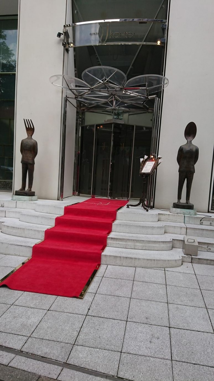 友達に誘われて初めて訪問しました。この「銀座うかい亭」は、米倉涼子主演の「ドクターX」のTVドラマの理事長の草刈正雄と病院長の西田敏行が会って食事するレストランのシーンが必ずここ「銀座うかい亭」という事で話題になったし、さらにトランプ大統領が来日したときにトランプ大統領を食事にお連れしたレストランということで、一度行ってみたいと思ってました。うかいは和食洋食ともに沢山店舗があり、東京タワーの傍の「東京芝とうふ屋うかい」に行った人の話を聞いて私も行ってみたいと思ってましたが、たまたま今回鉄板焼きの方に誘われて行ってきました。出来て15年だそうです。地下鉄東銀座駅6番出口から地上に出て新橋演舞場の方向に歩くと道なりに白い大きなきれいな建物、時事通信ビルがあります。1階にスターバックスが有り、その時事通信ビルのみゆき通り側1階に「銀座うかい亭」の入口があります。駅から徒歩3分です。洋風なエントランスはカタカナが似合う感じですが、店内はちょっとレトロな感じでギャップがあります。味はもちろんの事、気さくな心遣いの接客が素晴らしかったです。山栗のスープが絶品でした。安い方のランチコースをいただきましたが、飲み物をいただくと消費税・サービス料を加えて1人1万円前後です。お値段は高めですが、また行ってみたいと思いました。平日のランチタイムはコースーメニューの他にデザートのワゴンのお菓子が食べ放題で女性にはうれしいサービスでした。