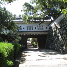 後楽園から月見橋を渡ってお城に向かうと、そこそこに立派な門を潜って場内に入ります。これが正門の様に感じますが、岡山城の正門である大手門は失われたままになっていて、現在、観光で登城時に通るこの門は搦手門とのことです。即ち、裏門であると同時に、政務を行なう表書院のある中段と藩主の居住区である本段とを繋ぐ廊下も兼ねていたそうで、廊下門と呼ばれていました。天守のすぐ横に正門があるはずがありませんものね。なお、正確には、この門は近年再建されたもので、元の廊下門はもう少し奥にあった様です。
