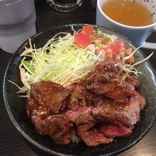 開店してから気になっていたチェーンのステーキ屋さんについに訪問しました。ステーキは案外高いのでどんぶりを注文。お椀はコンパクトですが食べてみるとボリューミーです。ミディアムにしましたが繊細な肉ではないので火は通した方が美味しかったかな。