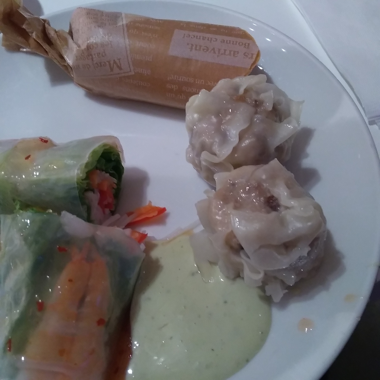 エビがたっぷり入ったパスタとくろぶたシュウマイがおいしかったです。