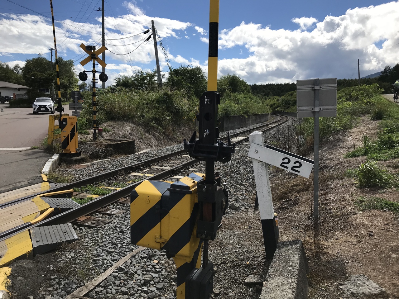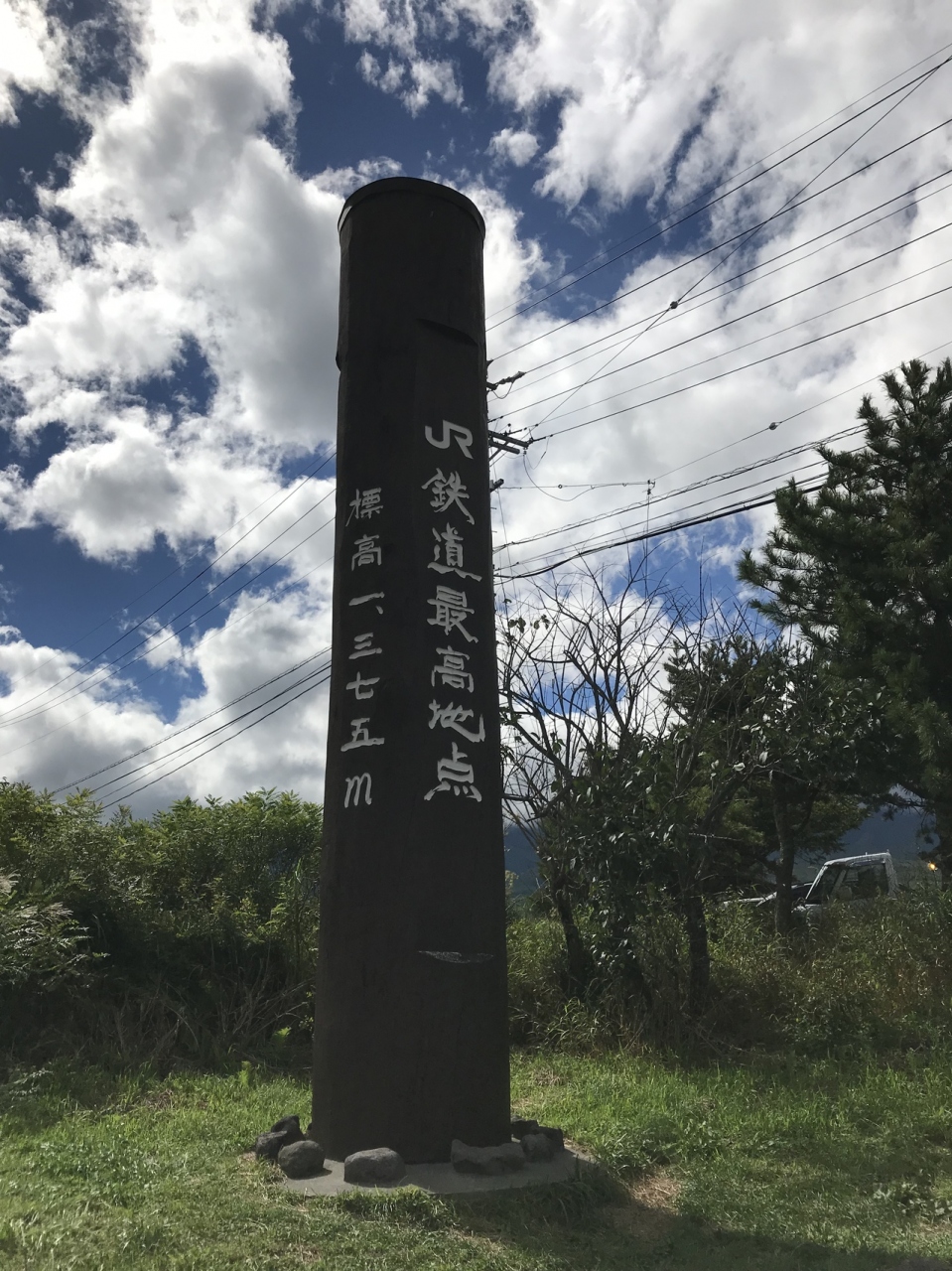 線路を挟んみ両側の道沿いに最高地点の碑は2碑建っている。