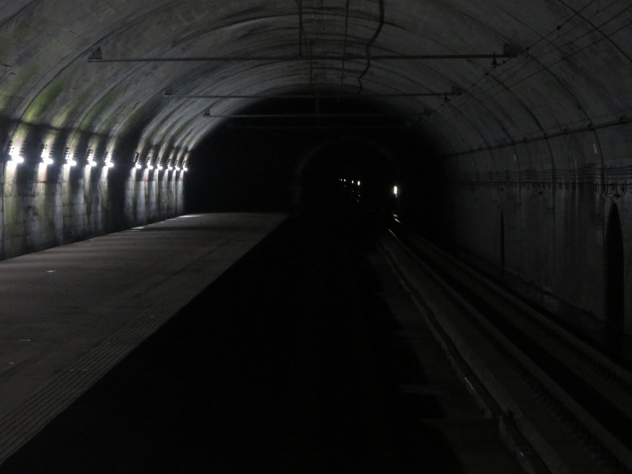 もぐら駅で名高い群馬・新潟県境の新清水トンネル内の土合駅。臨時の観光列車「谷川もぐら」号で土合駅に数分停車するので、下から階段を見上げてみたが、先が見えないくらい長い階段。帰りの「谷川ループ」号で地上にある上り線の駅から階段を見ても底が見えない。改札からホームまで15分以上余裕を取ってくださいというのも頷ける。