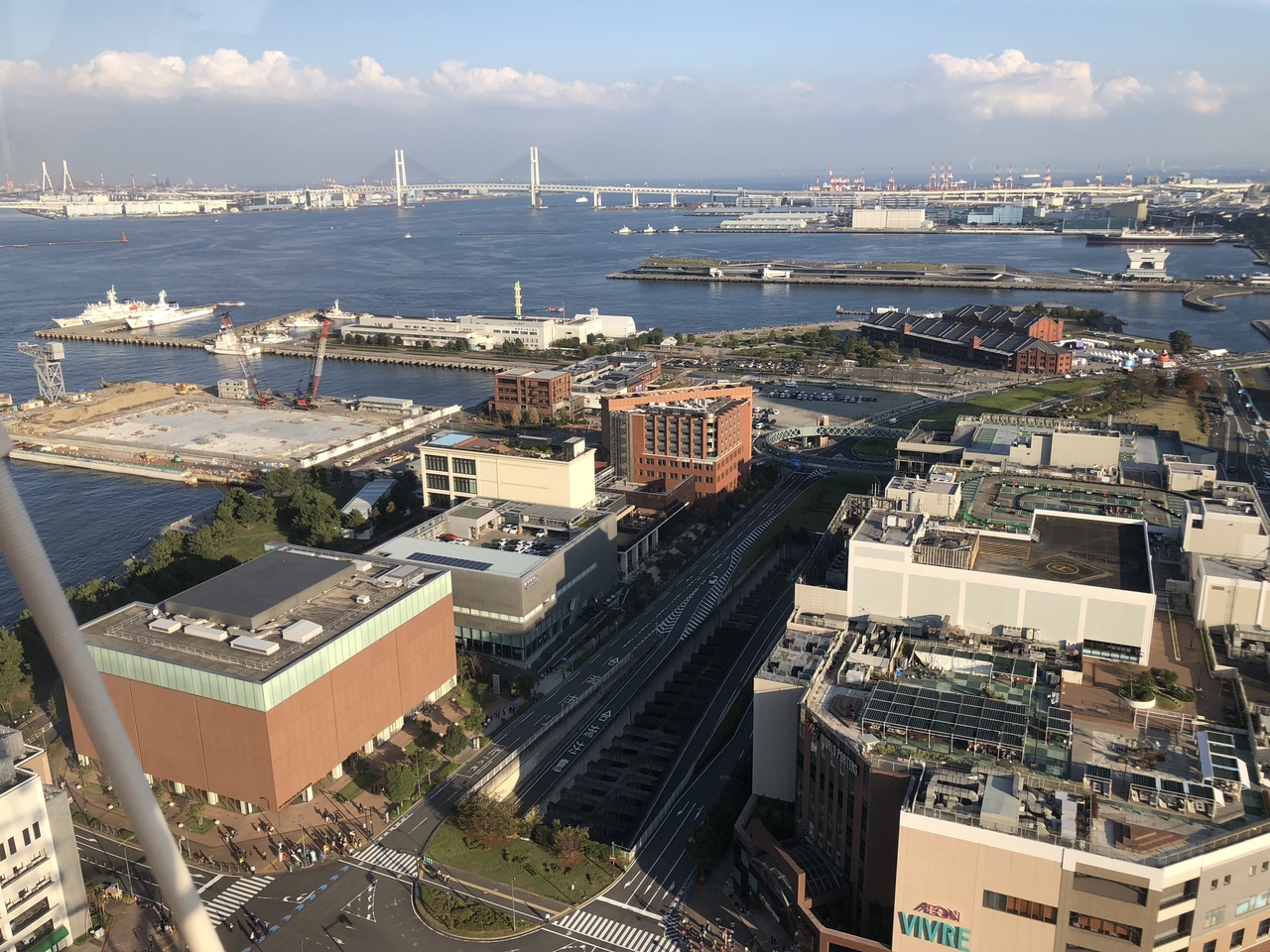 広大な海原、赤煉瓦、桜木町の高層ビル群などを遮るはなく眺めることができます。