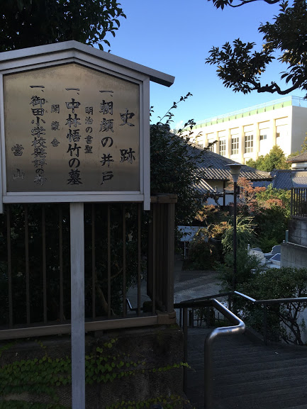 階段の手前に看板があり、史跡があることが案内されていて、興味をひかれます。ただ、階段を下った先には案内がなくて、どこに井戸があってどこにお墓があるのか探し回ってしまいました。静かで誰もいませんでした。