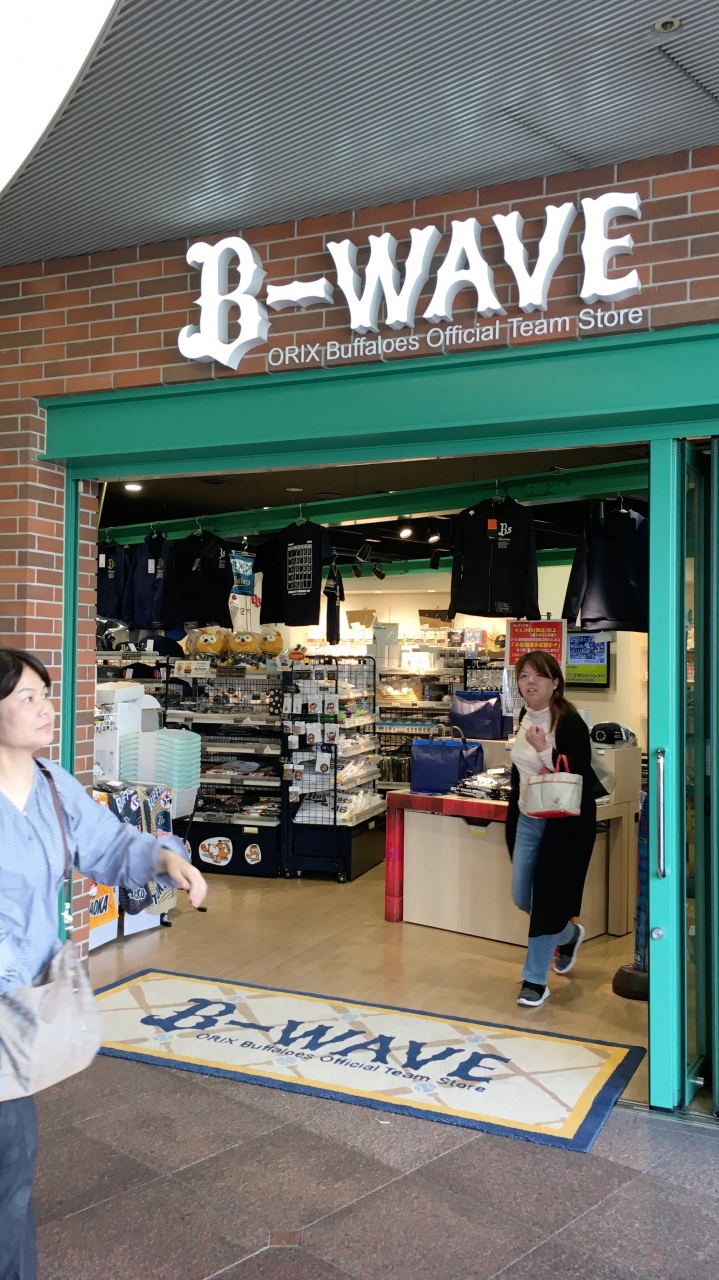 神戸交通センタービルの1階にあるB-WAVEさん。オリックスのオリジナルグッズや選手のサインのレプリカなども売っています。私の好きなT-岡田さんのグッズも売っています。それほど広いお店ではありませんので、買い物にはあまり時間はかかりません。また、店内にはチケットぴあの代行カウンターもあります。