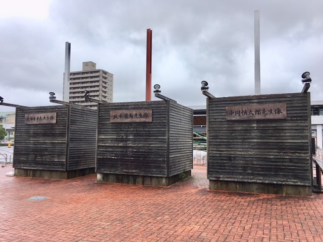 志士像は、左から武市半平太、坂本龍馬、中岡慎太郎の順に並んでいます。
