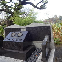 単純な石碑ではなく、黒い御影石の上の面にはメガネがデザインされているので近寄れば何の碑だか読まなくても分かるし、よく目立つ。