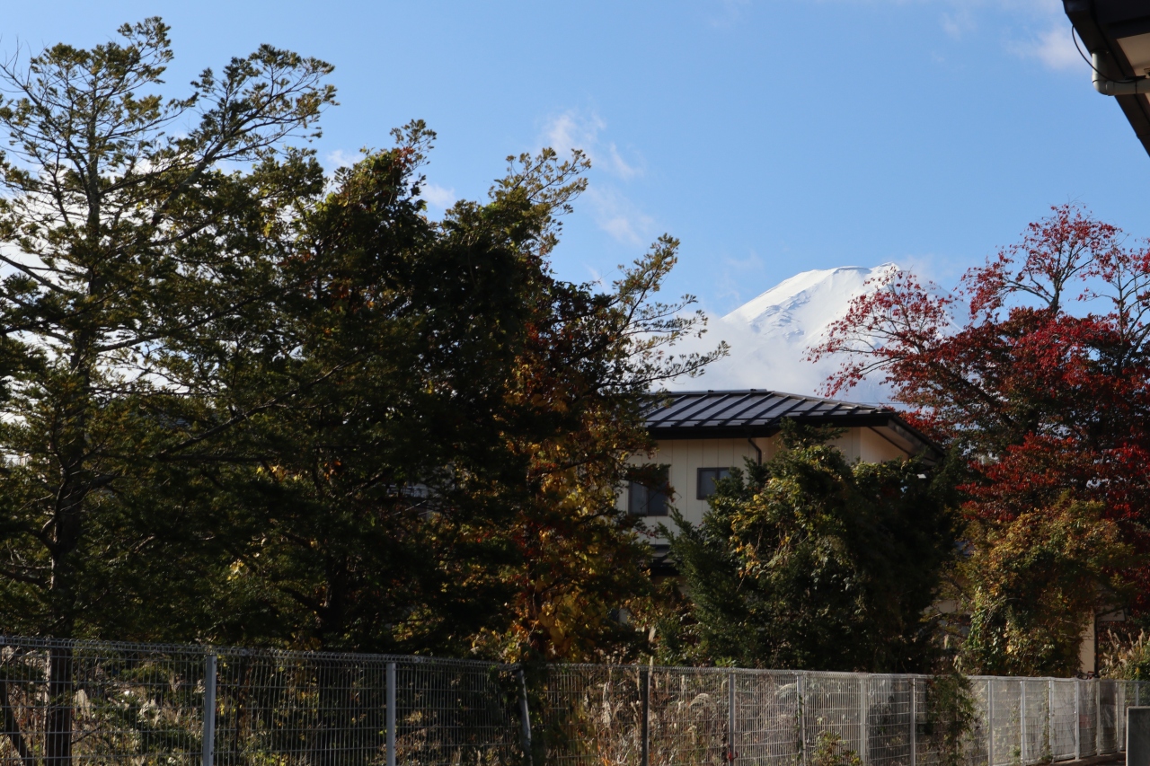 駐車場からも富士山が少し見えます。