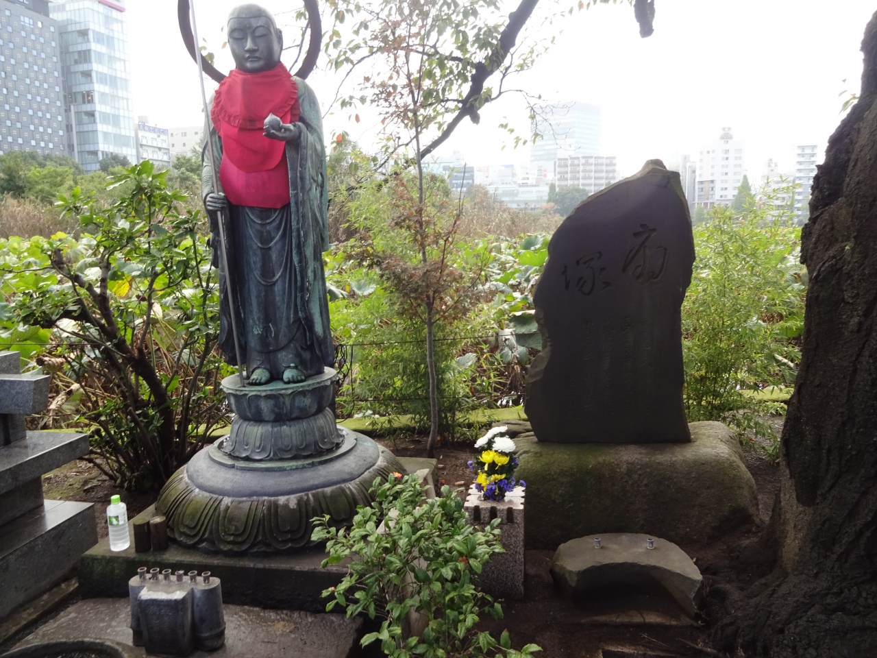 上野公園、弁天堂の境内、不忍池を背にしてに置かれているている扇塚。