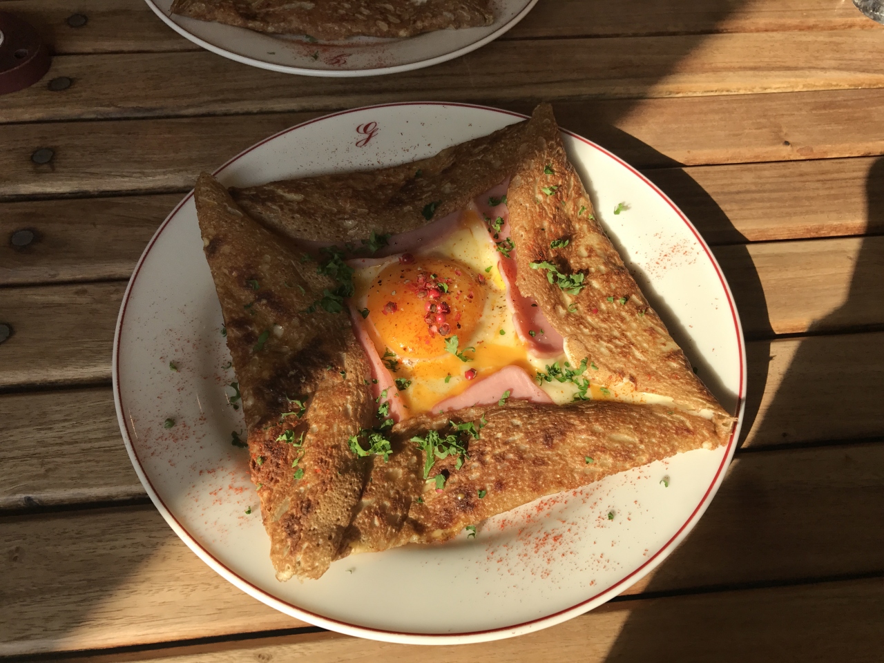 行くならランチがおすすめです。ガレット+クレープ+飲み物ついて2000円くらい。飲み物でシードルが選べるのがうれしいです。ここのガレットはボリューム満点で、具材が多いのも高ポイント。もう少し選べるメニューが増えると嬉しいけど、ランチだから仕方なし。
