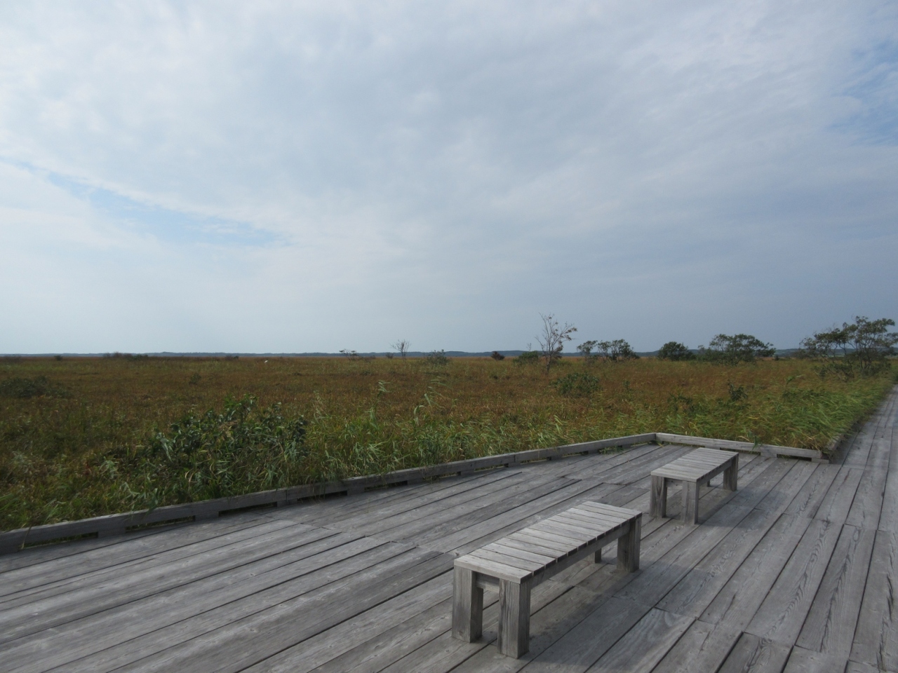 サロベツ原野を散策する拠点の施設です。ここで展示を見て湿原のあらましを把握してから、奥の出入り口から湿原に出ます。整備された木道で歩きやすいです。はるか向こうまで原野が続きますが、そのまま一周します。訪れた日は平日もあってか広い原野に一人だけ。大地を独り占めでした。